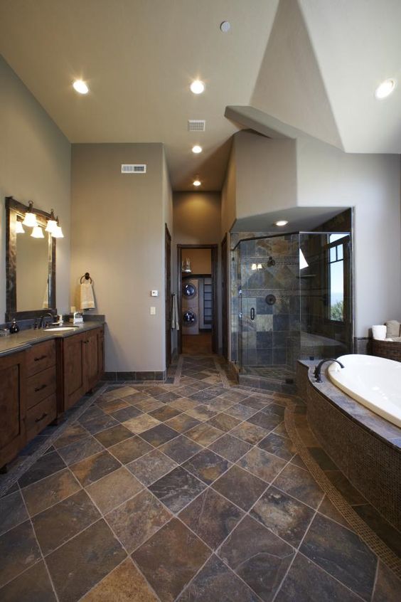 Amazing gallery of interior design and decorating ideas of slate tile bathroom floor in bathrooms, entrances/foyers by elite interior designers. We know that you love seeing a hand selected bathroom tiles images gallery to provide inspiration for your next project. Next time when you go for bathroom remodel, just keep all these benefits of. The process involves using specialist tile backing board which won't warp and requires a bit more effort than using standard bath panels, but it is often worth the extra. Stonewall décor is liked for its exquisite design the dark texture is the most transformative element that gives the big squares tiles a sophisticated look paired with dark slate grey floor tiles.